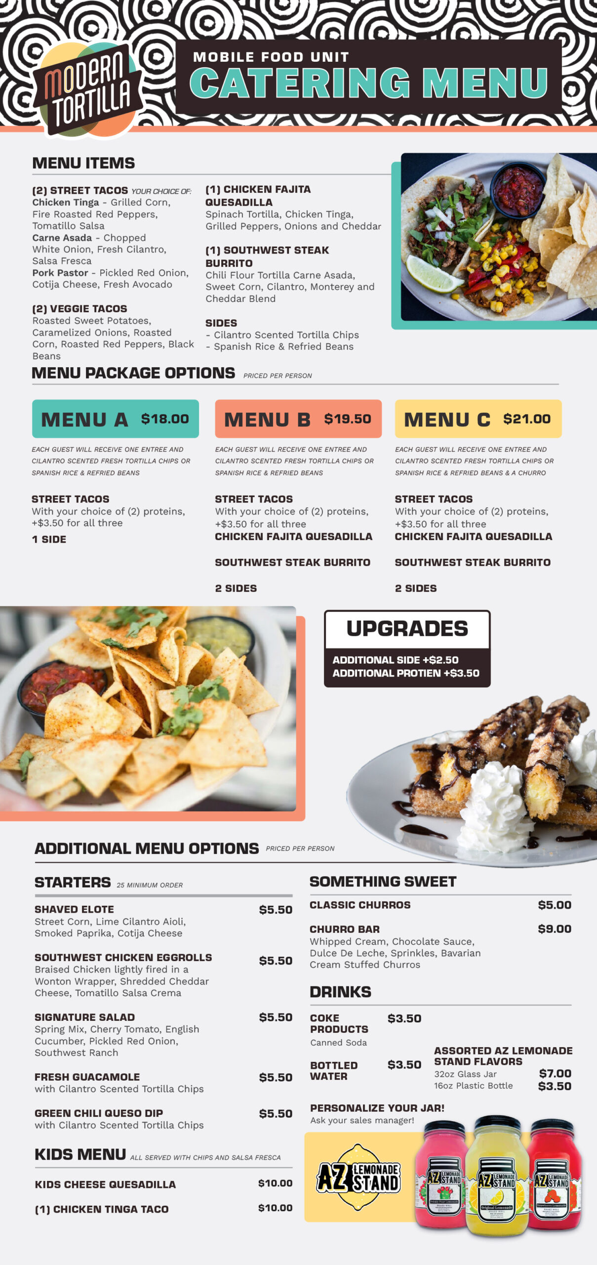Please review the menu and respond back via email with what options you like best. Your sales manager will then share a quote with you! If you are working with a budget or want something custom please let your sales manager know.